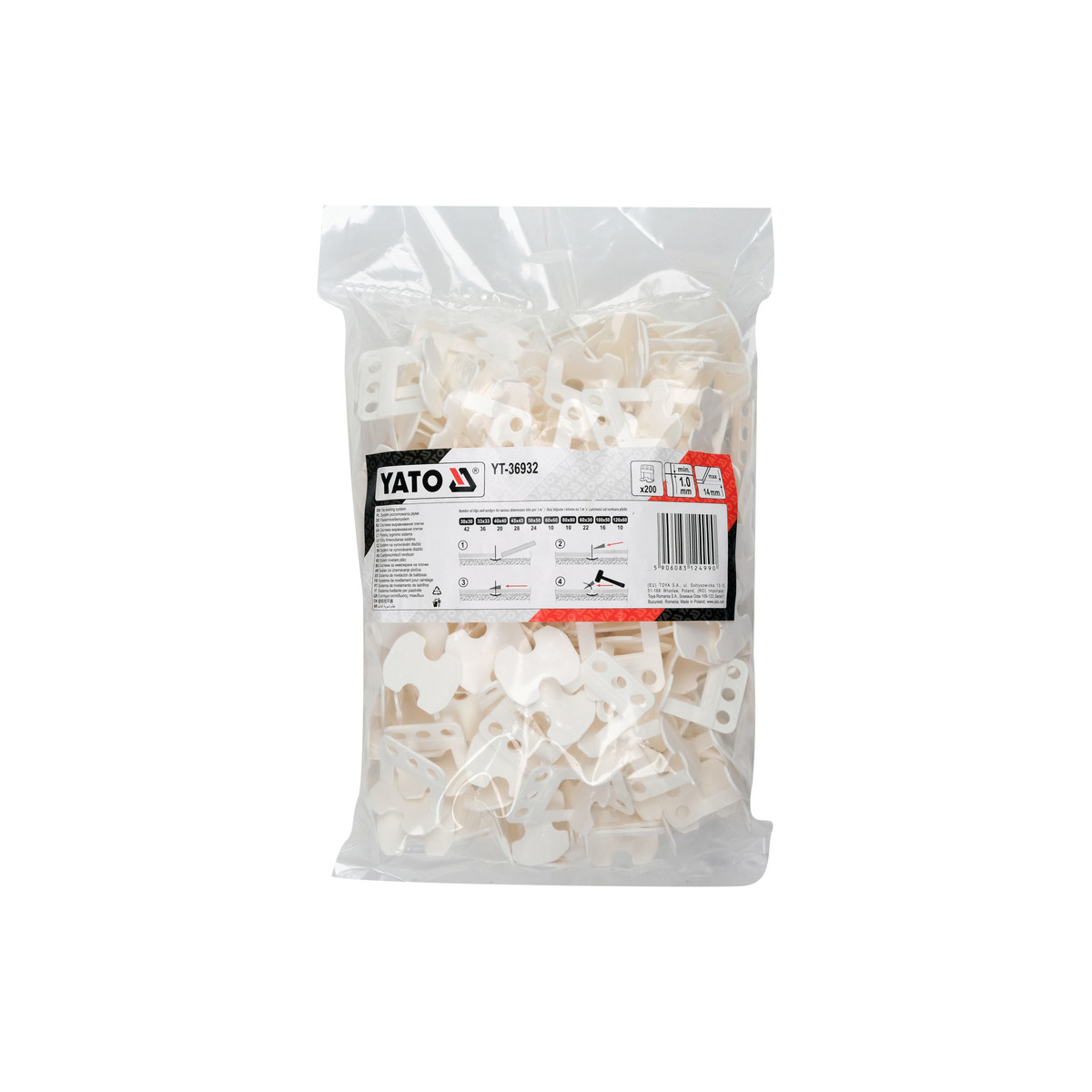 Кліпси СВП для викладання плитки 1 мм (плитка t≤ 14 мм) 200 шт. Yato YT-36932